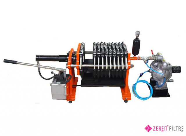 Arıtma çamurunun susuzlaştırılmasında veya proses çıkış suyunda katı sıvı ayrımının yapılmasında en fazla kullanılan ve verimi en yüksek olan makinedir. Sadece atıksulardan kaynaklanan çamurların susuzlaştırılmasında değil, kimya, maden, gıda, boya gibi birçok proseslerdeki filtrasyon problemlerine de çözümler üretmektedir. Filtre Pres metal aksam ve filtreleme ünitesini oluşturan plakalardan ve filtre bezlerinden meydana gelmektedir. Metal aksamın görevi filtreleme ünitesini faaliyet esnasında içeride uygulanan yüksek basınca karşı korumaktır. Filtreleme ünitesi ise filtre pres de katı-sıvı ayrımını yapan ekipmandır. Bu ünite, birbiriyle aynı ebatlarda ölçümlendirilmiş plakalardan oluşmaktadır. Her plaka üzerine, filtre pres bezi takılarak yada bağlanarak filtreleme ünitesi oluşturulur Filtre bezlerinin buradaki görevi gözenekli yapısıyla plakalara yapışarak çamur içerisindeki suyun filtre bezlerinden geçerek kekin bezler üzerinde toplanmasını sağlamaktır.Kullanım Alanları